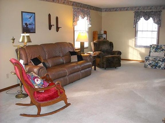 Immediate possession is offered in this beautiful 3 bedroom, 2 1/2 bath home in desirable Oak Crest Subdivision sitting on cul-de-sac lot. Enter this home through the inviting entrance room and continue to a large living room. Kitchen has eat in abilities whether you choose to sit at the breakfast bar or at the table looking out to the picturesque view from the door leading to the entertaining deck. Kitchen features custom cabinetry with 3 lazy susans and convenient pull out cabinet draws. Nice formal dining room just off kitchen. First Floor laundry. Bonus room in the lower level could be used as 4th bedroom. Family room features stone fireplace. Lawn irrigation system is an added feature as well. Great family home.