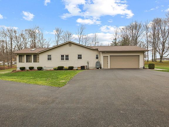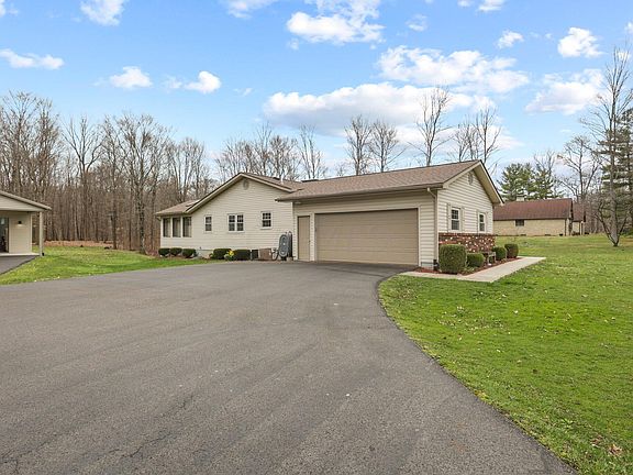 OPEN HOUSE 1pm-3pm Saturday 3/16 A beautiful 4 bedrooms, 2 1/2 bathroom ranch nestled on 5.2 acres! An updated kitchen provides tons of cabinetry for storage & plenty of counter space for meal prep. The large great room w/ a wood-burning stove is perfect for cozying up to on chilly nights & the finished lower level w/ a bar is perfect for entertaining. The large 3-seasons room is perfect for enjoying the outdoors. The property is situated on a 5-acre wooded lot w/ trails, making it perfect for nature lovers. The treated soil garden is an added bonus for those who enjoy gardening. The 24 X 40 outbuilding w/ a 10ft overhang & electric is perfect for storing equipment, cars or a workshop. Recent updates include new roof in 2021, water conditioner in 2021 & blacktop & sidewalks in 2017.