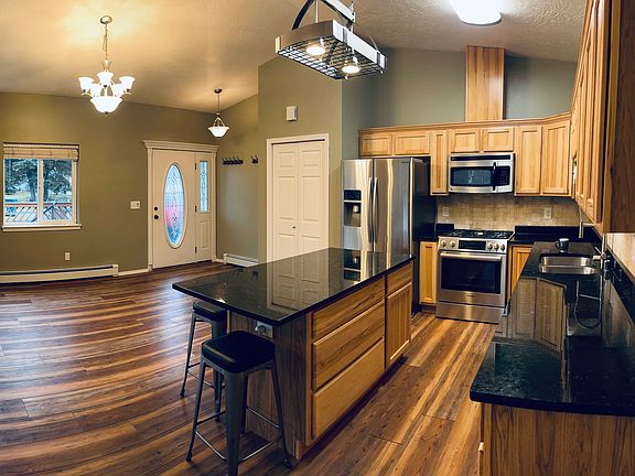 This 3-bedroom, 2-bathroom home at 12515 Iris Way in the heart of Eagle River, AK, combines modern upgrades with cozy living spaces. The centerpiece is a spacious grand room that unites the living, kitchen, and dining areas, complete with a warm fireplace for Alaska's cooler evenings. The kitchen shines with beautiful granite countertops, abundant counter space, and a bar, ideal for preparing meals. It features premium, commercial-grade appliances, including a Bosch range, Samsung refrigerator, high-efficiency washer, and over-the-range microwave. The home includes a laundry area with a washer and dryer for added convenience. An on-demand hot water system ensures efficient and continuous hot water supply, while baseboard heating keeps the entire home warm and comfortable through the winter months. An oversized 2-car garage offers room for larger vehicles like trucks, plus extra space for storage or a workshop. Additionally, four more parking spaces accommodate guests or recreational vehicles. There's plenty of storage throughout the property, ideal for keeping your outdoor gear and toys organized. Step outside to a rear cement patio directly accessible from the garage, perfect for outdoor gatherings. A side yard and garden area create a peaceful retreat, ideal for summer blooms or a small vegetable garden. Families with pets or small children will appreciate the fenced side yard and spacious porch, offering a safe play area. The home is all on one level for easy access, with convenient laundry facilities. The downstairs area is unoccupied and reserved for storage by the owner, currently deployed with the FAA. This beautiful 3-bedroom, 2-bathroom home at 12515 Iris Way in Eagle River, AK, is available for lease through April 2026, making it an excellent choice for those seeking a long-term rental. The lease duration is approximately 18 months, with an end date of April 2026. The owner covers the costs of water, wastewater, and trash services, while tenants are responsible for gas, electricity, and internet. Smoking is not allowed inside the unit, and for safety reasons, fire pits are not permitted on the wood deck but can be used in the designated area or on the cement patio. This home is ideal for families or professionals looking for a well-maintained, upgraded space with a flexible lease arrangement. The owner is currently deployed with the FAA, ensuring a quiet, private living experience throughout the lease term.