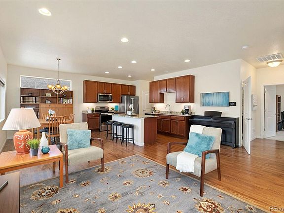 Welcome to the highly sought-after Eastlake Lifestyle Community Condos in Thornton! This inviting main-level condo offers a spacious 1 bedroom primary suite with a walk-in shower and walk-in closet, and an additional office/non-conforming bedroom, providing flexibility and room to grow. Embrace an active lifestyle with daily group activities just steps away at the community center, conveniently located across the street. Designed with accessibility in mind, this condo features wheelchair-accessible hallways and doorways for easy maneuverability and long-term solution. The large eat-in kitchen boasts granite counters, a kitchen island with bar seating, and a pantry, perfect for culinary enthusiasts. The primary bedroom is wired for ceiling light fixtures, allowing you to create the perfect atmosphere. Bedroom 2 is non-conforming and is set up as an office/guest room. You can easily add a door and closet to have a full 2nd bedroom. Step outside to your private patio with a lovely awning, providing shade and relaxation. Situated on one of the best community lots, this condo backs onto a sprawling grass area, offering a serene and picturesque setting. 2-car attached garage provides easy accessibility. Don't miss the opportunity to call this EastLake Lifestyle Community condo your home! These are not age-restricted condos.