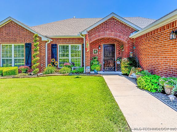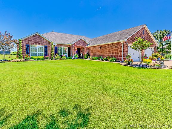 Space & Seclusion w/ all amenities close by. Beautifully landscaped 2.17 acres w/3 b/2b 2 car brick home. Features include 2x12 ext. walls, open floor concept with spacious, kitchen & living rm. Kitchen has island & large walk-in pantry. Range & DW are new. Int. Safe Rm is part of the MB Closet. 30x56 insulated shop w/ 12x56 ft overhang & 10x16 covered porch. 200 Amp w/ concrete floor. Above ground pool & a 10x12 storage shed included. Collinsville Schools & minutes from Owasso Shopping.