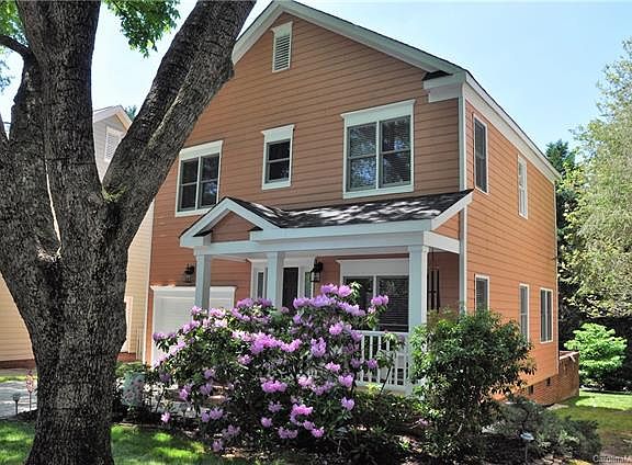 Charming is the word for this gem of a home in the very desirable neighborhood of Cedarfield. Lovely hardwood floors on main level with see through fireplace and built in shelving in living and dining rooms. Kitchen has plenty of cabinets and counter space. Upstairs there are 2 large secondary bedrooms, full bath and laundry room. Huge master with its own bath. Whole house has been freshly painted. Covered rocking chair front porch and great slate/brick patio out back with gorgeous plantings/landscaping.