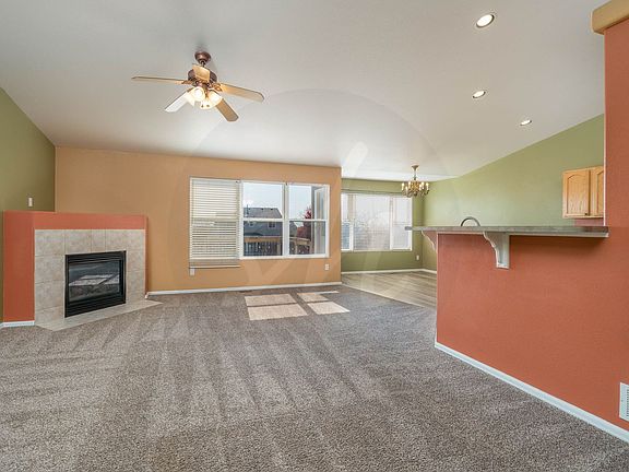 Enjoy plenty of space with this beautiful 4 Bedroom, 3 Bathroom ranch style home with a 3 car garage on over half an acre with views! This home is situated in the Woodmen Hills subdivision with neighborhood amenities. The main level has a large master bedroom with a walk in closet and 5 piece ensuite. There is an office or flex space, 2 additional bedrooms and full bathroom on the main level. The open kitchen has stainless steel appliances and hard surface flooring which extends into the nook area. The kitchen overlooks the main living area with a gas fireplace and the patio door that walks out to a large deck that is perfect for grilling and entertaining. The finished basement is great for entertaining as well, as it has a built in entertainment center, ping pong table, and wet bar. The basement has LVP flooring, another gas fireplace and walks out to the large fenced backyard. The basement also includes 1 additional bedroom, a full bathroom, and storage room. This home is located close to the golf course, rec center and restaurants.