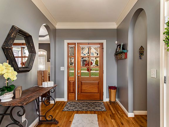 Beautiful finished custom built 1.5 story walkout in Pine Valley Estates. This well maintained home features a spacious living room with tons of natural light, gas fireplace and beautiful newly finished hardwood floors. The eat-in kitchen has cherry cabinets and stainless appliances which remain with the home. The large first floor primary bedroom has newer carpet (2019) and trey ceilings along with a separate bath with soaker tub, separate shower, double vanity sinks and walk-in closet that is also attached to the laundry room. Also on the first floor there is a half bath and formal dining room. New paint on entire main floor (2020). On the second level there are three large bedrooms with newer paint, full bath with double vanity sinks and a bonus room. In the finished walk out basement you will find a family room, rec area with barn wood wall, a bar area with cabinets and stained concrete, a full bath and a theatre room which all equipment remains with home. All new carpet in the basement (2020) and mostly repainted in (2020). On the exterior, there is a deck that has trex decking boards and under-decking, a covered patio with outdoor fireplace great for entertaining and a koi fish pond. There is also an irrigation system and pet electric fencing. Don't miss out on this home!! Schedule your showing today!!