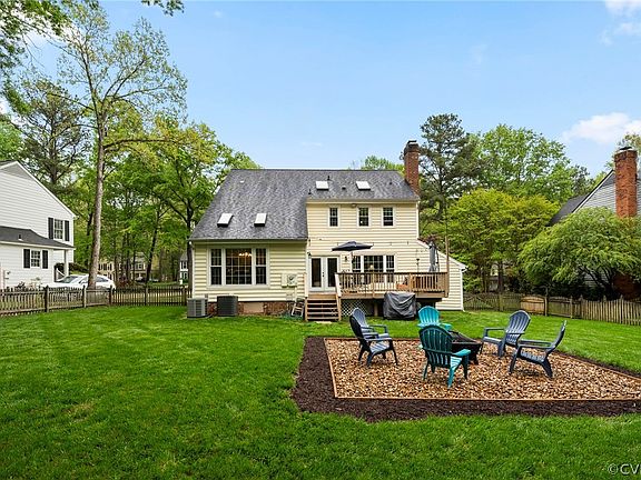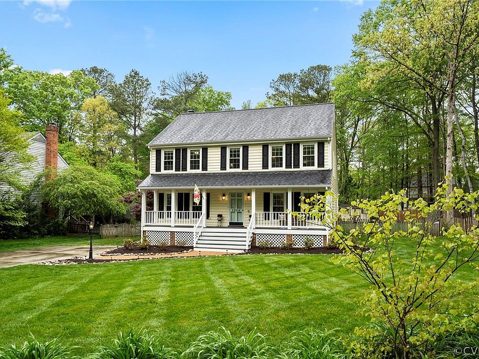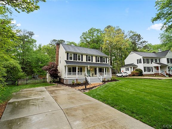Charming Colonial home, situated in the highly sought-after Gayton Elementary, Pocahontas Middle, and Godwin High School district and conveniently close to Short Pump in the West End area. This beautiful home effortlessly combines classic charm with modern updates, offering the perfect blend of timeless appeal and contemporary style. As you approach the front of the house, you'll be welcomed by a spacious and inviting front porch that sets the tone for the warm and welcoming atmosphere. Inside, you'll be greeted by the beautifully REFINISHED HARDWOOD floors that span the entire 1st level. The interior has been tastefully RENO and PAINTED within the last 4 years, including the fireplace, adding a touch of elegance. The 1st floor showcases a delightful dining room adorned with crown molding, chair rail, and wainscoting, exuding sophistication. The living room features French doors, providing versatility as an office space or an area for entertaining. All light fixtures on the 1st floor have been updated, offering contemporary finishes throughout. The KITCHEN, RENO within the last 3 years, is a chef's dream boasting granite countertops, updated cabinets, and new SS appliances. It showcases vaulted ceilings that fill the space with tons of natural lighting. The kitchen also features a nicely sized breakfast nook that seamlessly flows into the family room. Upstairs, you will find 3 bedrooms, along with a spacious primary bedroom, offering the perfect retreat for the entire family. The large primary bedroom also features a newly RENO attached EN SUITE BATH. All bathrooms including the HALL FULL BATH have undergone tasteful RENOs. As you step outside to the FULLY FENCED backyard, where you'll discover a large deck and fire pit area, perfect for hosting summer barbecues or enjoying intimate evenings by the fire. This backyard oasis offers endless possibilities for outdoor entertainment and relaxation. Additional features: 2-zoned HVAC system, DOWN unit 2 years old, ROOF is less than 5 years old.