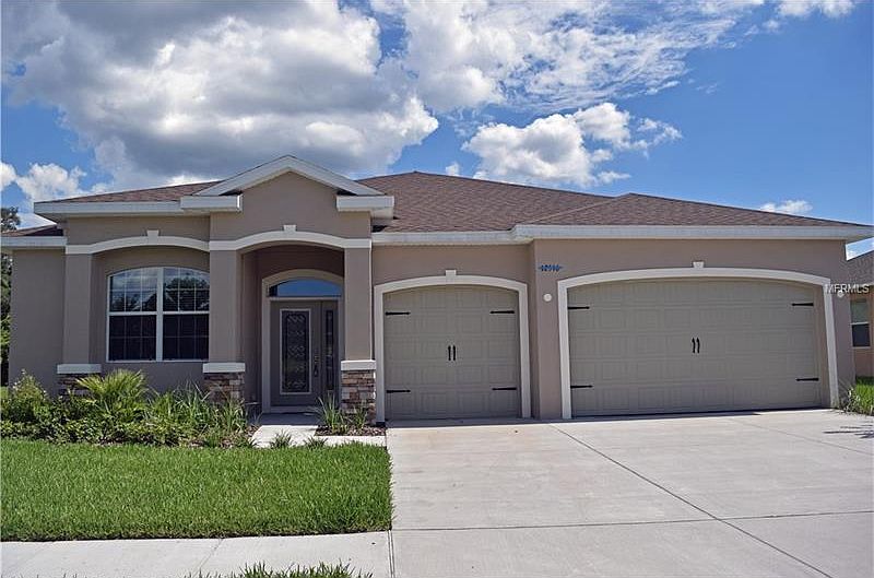 MOVE IN READY! New Construction Vitale Home recently completed. Home located in the North Land O Lakes area.This single story home offers four bedrooms, three baths, and a three car garage. Kitchen has walk-in-pantry, island with breakfast bar and a cozy breakfast nook, granite counter tops and upgraded cabinets. Kitchen has a great open floor plan that is adjacent to a large family and dining room which has dark hardwood floors. Master suite has a huge walk-in-closet, relaxing garden tub, separate shower, and dual sinks. The Verona floor plan offers over sized colonial baseboards, ten foot ceilings, huge private covered patio, Moen ® plumbing fixtures, and energy efficient appliances.