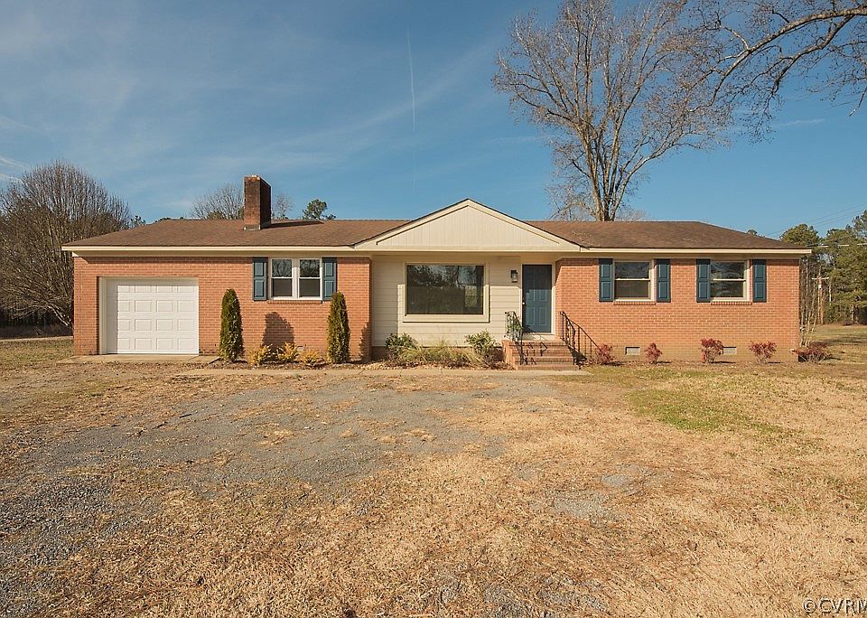 Low-Maintenance 3-bedroom, 1.5-bath Brick Rancher on over 21-acres in Prince George County. Open floorplan with lots of upgrades... new HVAC, new electrical service, updated kitchen with stainless appliances, fresh paint, new or refinished flooring throughout. Two parcels totaling 21.63 acres with plenty of road frontage and timber may offer investment opportunities. Located close to interstates, shopping and Fort Lee.
