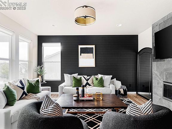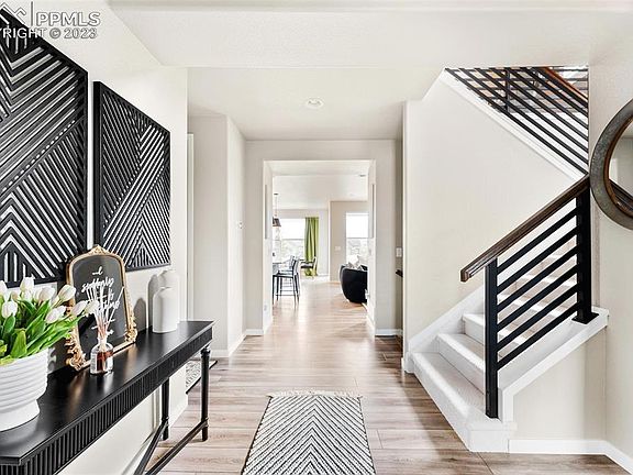 This beautiful two-story home in the coveted Flying Horse community would grace the covers of many luxury magazines. Off the entrance is a private main floor office & powder bathroom w/ wallpaper & custom lighting. The home’s great room has a floor-to-ceiling slate fireplace, accent wall & surround sound. This chef’s dream kitchen has brand-new appliances, including a touchscreen Samsung refrigerator, Samsung dishwasher, a custom akdy hood, Samsung double ovens & Zline stove. The quartz countertops, farmhouse sink, granite slab backsplash, custom cabinets & lighting are the perfect accents. This kitchen has two pantries, including a prep pantry w/ coffee bar. Across from this pantry is a convenient drop-zone & custom dog water station w/ pot filler. Upstairs, the primary suite has recently been remodeled w/ accent wall, custom lighting, private covered deck, remodeled primary bathroom & custom closet w/ its own washer & dryer. There are two additional bedrooms on the upper level, one w/ an en-suite bathroom & walk-in closet. Powder coated metal & wood railing lead you to the breathtaking basement w/ an additional bedroom, great room, game space, workout area & additional laundry room. Beautiful views of Pike’s Peak greet you as escape to this home’s outdoor oasis w/ custom pergola, outdoor lighting, custom water feature, concrete patio, hot tub/sauna pre-wire & gas line for bbq. The oversized three-car garage has custom cabinets & work area. This home has a hot water circulating system, home central humidifier, motorized shades throughout, plantation shutters, Ring homes security system w/ automatic cameras & lights, etc. (*see documents for a complete list of upgrades). Within walking distance is a large park with playground and one of Colorado’s top golf course communities: Flying Horse, athletic club w/ three pools & fine dining. This home has convenient access to I-25, dining, shopping & the Air Force Academy. The only thing this home overlooks is Pike’s Peak!