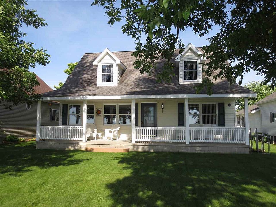 Houghton Lakefront, west side location. Modern 3 bedroom, 2 bath home with large kitchen and open floor plan. Large covered porch facing the lake. Nicely landscaped yard. Seawall.