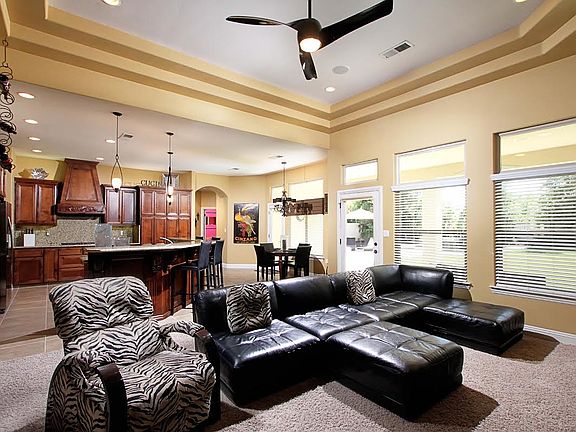 Seven Oaks Grand Island Beauty! Spacious floor plan with five bedrooms! Kitchen features granite counters, stainless steel appliances, 5 burner gas stove, convection oven, appliance garage, built-in wine cabinet, gorgeous cabinets with custom woodwork, refrigerators included, tons of storage! Formal dining room, Central Vac, Master suite includes spa tub and walk-in closet. Relax in the beautiful backyard around pool with Baja shelf entry including umbrella. Spa, fire pit, covered patio and outdoor shower! 3 car garage. Close to great shopping and schools!