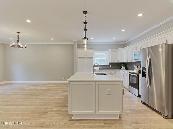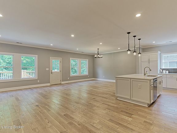 Discover this stunning new construction brick ranch, combining contemporary design with refined living. Inside you're greeted by a spacious open-concept layout that merges the living, dining, and kitchen areas ideal for both entertaining and everyday living. The kitchen features elegant quartz countertops, modern stainless steel appliances, and a center island with bar seating, serving as a hub for both meal preparation and casual dining. The primary suite offers a tranquil retreat, complete with a spacious walk-in closet and a luxurious ensuite bathroom equipped with a glass-enclosed shower and a double vanity. Two additional bedrooms are thoughtfully arranged, providing comfort and privacy, with easy access to a well-appointed full bathroom. A convenient powder room near the main entrance adds to the guest amenities. Outside, a deck extending from the living room offers a wonderful transition to outdoor spaces, perfect for gatherings or tranquil evenings. The laundry room, strategically placed off the garage, maximizes convenience and functionality. Additional storage is available in the cellar, accessible from outside. Perfectly situated between Middletown and Anchorage, this home boasts superb proximity to LaGrange Road, Old Henry Road, and I-265, offering an ideal mix of serene residential living and easy access to local amenities.