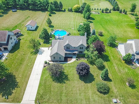 Over an acre tree lined private back yard in Yorkville School District. This one owner home not only offers you space inside, but the outside offers a playground of fun. Open floor plan home has 9' ceilings throughout the main floor. 2017 upgraded kitchen with 42" Birch cabinets, granite counters, stone backsplash, pantry cabinets, and higher end stainless appliances. The family room is spacious and wide open featuring a stone faced, wood burn, gas start, fireplace. French doors lead you to the once office now playroom with hardwood floors and carpet in-lay. Formal dining for those special occasions. 4 overly generous bedrooms are located on the second floor. Double doors open to the Master suite with vaulted ceiling and 2 walk in closets. Recently remodeled private bath with double sinks enhanced with quartz counter, marble tiled shower with 2 shower heads, and electric blinds. The heated soak tub never lets the water cool down, so relax as long as you please. The shared hall bath saw its facelift in 2018 with double sinks, quartz counter and tub/shower combination. The finished basement adds so much more living space to this home. A recreation room to host those movie nights, and a kitchenette provides the space for the snacks. The now game room is also a perfect area for exercise space, playroom, craft room, etc. Overnight guests can find their privacy in the 5th basement bedroom and full bathroom with tiled shower. You will be the social hub for friends and family as summertime fun is happening in this backyard. Patio one is covered for shade and patio two for the sun lovers. The 32' above ground pool was relined in 2019 and is surrounded by new decking and stairs. Regulation size sand volleyball, firepit, and more than enough room for a family baseball game. The 3 car garage is deep and includes an 8x8 storage nook. The roof was a complete tear off in 2019 with copper accent, furnace is 2021 new, AC 2012, water heater 6 years old, and ejector pump 1 year old. Although you will feel like you are set apart, local shopping, physicians, banks, and schools are only minutes away.