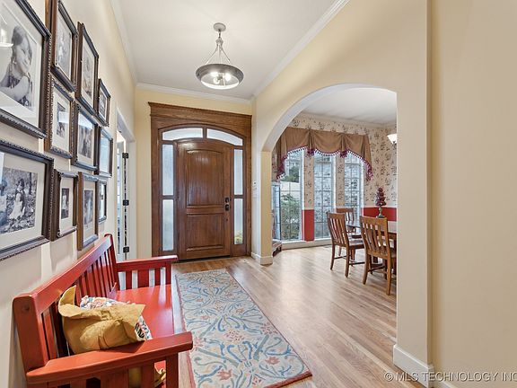 Rare find - 4 bedroom & 3 full bath & 1/2 bath in Country Lake Estates. Tucked away on the inside of the neighborhood featuring a picturesque deck overlooking beautiful landscaping. Private fountain/garden out front for peaceful evenings and plenty of space for entertaining. Home features two bedrooms down, 2 up and a game room. Wood floors, vaulted ceiling in office, formal dining room & open kitchen concept. Gas range and pantry - Corian countertops. Laundry room complete with sink and exterior door. Very spacious and beautiful home - New Roof, 2 HVAC and 1 WH. Sellers leaving refrigerator and W/D. Neighborhood features 7 acre lake, park with playground & walking trails. Jenks Schools, Close to highways, dining, & shopping. Don't miss seeing this home today!