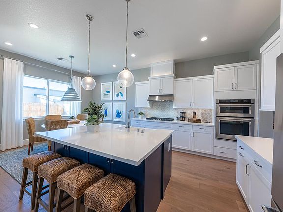 Don t miss this unique opportunity to purchase a professional designed, fully furnished home in a very desirable location. A welcoming entrance offers views of the home's gorgeous hardwood floors and luxurious modern finishes. Premium finishes in the kitchen include KitchenAid appliances and two-toned full overlay cabinets. As the centerpiece of the home, the open-concept great room is highlighted by expansive glass doors to the covered outdoor patio. The primary bedroom suite is the perfect retreat with a multi-slide exterior door leading to the backyard and a spa-like bathroom that features an immense shower, dual sink vanity, and a walk-in closet. This home is situated within walking distance of the clubhouse. Call and schedule a tour today. Disclaimer: Photos are images only and should not be relied upon to confirm applicable features.
