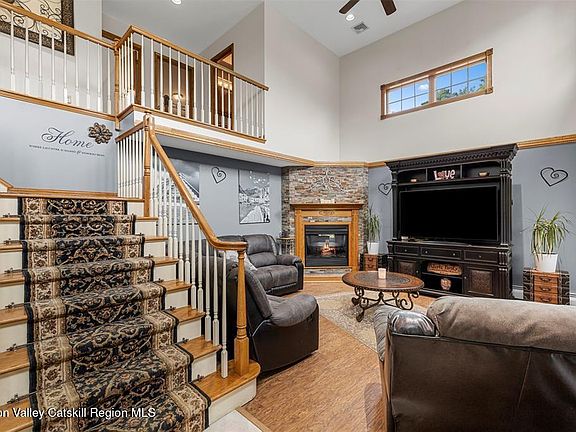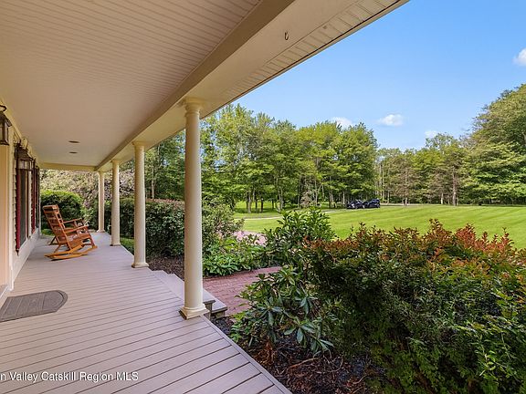 Welcome to 1252 Albany Post Road in Gardiner, New York—an exceptional custom Colonial home set on 4.5 peaceful acres in one of the Hudson Valley's most cherished small towns. Thoughtfully designed and meticulously maintained, this property is the perfect blend of elegance, comfort, and lifestyle. Tucked away in the heart of Gardiner, you're just minutes from local farms, cideries, scenic trails, and all the charm this region is known for. From the moment you arrive, a stamped paver walkway leads to a welcoming front porch made for rocking chairs and slow mornings. Step inside to a tiled entry foyer with soaring cathedral ceilings and a graceful staircase that sets the tone for the home's spacious and elevated design. A custom Hickory built-in office creates the perfect work-from-home environment or peaceful creative retreat. The living room is flooded with natural light, anchored by a striking stone gas fireplace that adds warmth and character to the space. The chef's kitchen is an entertainer's dream, complete with granite countertops, a double-tiered island, tile backsplash, 5-burner gas stove, double wall ovens, and recessed lighting. A formal dining room opens through French doors to a screened-in back porch with a hot tub—offering a year-round escape and a true connection to the surrounding landscape. Upstairs, the primary suite is a sanctuary all its own, featuring walk-in closets and a spa-inspired en-suite bathroom with a double vanity, soaking tub, and glass/tile walk-in shower. Three additional bedrooms, three full bathrooms, and a powder room are thoughtfully placed to accommodate both family and guests with ease. The finished basement offers a versatile recreation room ideal for movie nights, game days, or gathering with friends, along with plenty of storage. An attached two-car garage adds everyday convenience, while the expansive backyard is a true oasis—with an in-ground pool, stamped concrete patio, custom paver stonework, and a fire pit perfect for starlit evenings. Located just minutes from New Paltz, Minnewaska State Park, and the Mohonk Preserve, this home offers quick access to hiking, climbing, and some of the best outdoor recreation in the Northeast. With nearby bus service to NYC, you'll enjoy both the tranquility of the Hudson Valley and the connection to the city when you want it. 1252 Albany Post Road is more than just a home—it's a lifestyle. A rare opportunity to live beautifully in Gardiner, surrounded by nature, community, and the kind of soul only the Hudson Valley can offer.