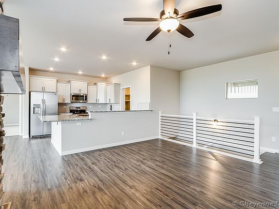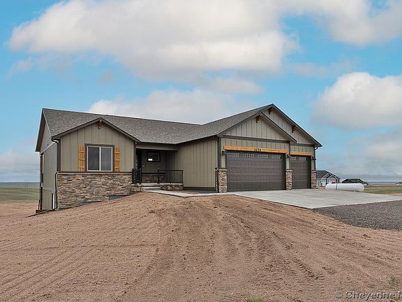 Located in the private rural neighborhood Whispering Hills is only 15 minutes from Cheyenne. This home is loaded with upgrades including a 9-foot basement with a truss ceiling (allowing for a more open look and no support posts), large walk-in tile shower in master bath, a built in coffee bar/dining hutch and more. Pictures are of a previous build, colors/finishes will vary.