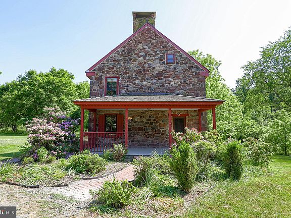 Turn off the paved road onto the gravel driveway through the open gate as you wind through a "tunnel" of mature trees eventually opening to views of this picturesque farmette complete with a charming stone farmhouse surrounded by lush greenery and mature trees, creating a peaceful and serene ambiance that is perfect for those seeking a tranquil retreat away from the hustle and bustle. As you continue around the circle driveway and approach the farmhouse, you are greeted by a classic stone facade that exudes character and charm. The stone exterior is complemented by a traditional wooden shake roof, adding to the farmhouse's rustic appeal. The covered side porch hosts a porch swing for relaxing. The interior of the home is equally impressive, with original features that have been carefully preserved over the years. The main level boasts a great floor plan, with a spacious living room, a large wood burning fireplace and wide plank wood flooring. The large kitchen has soaring cathedral ceilings with plenty of cabinets and counter space accentuated with slate flooring. The kitchen dining area is perfect for entertaining guests or relaxing with family. The deep window sills and accompanying windows throughout the home provide an abundance of natural light, creating a warm and inviting atmosphere. On the second floor the farmhouse features three bedrooms and a full bathroom. Exposed stone walls give each room its own unique charm and character. The bedrooms are comfortable and feature a fireplace in the one room and a wood stove in the other, giving plenty of room to relax and unwind. The third bedroom is on the third floor. In addition to the main house, the property also includes a large bank barn with lower level bays and a mostly open upper level. An oversized detached 3-car garage with 12-foot ceilings has 10-foot doorway openings to easy accommodate large vehicles. The bank barn is perfect for storing equipment or for use as a workshop, while the garage is ideal for car enthusiasts or anyone who needs extra space for storage. Overall, this charming stone farmhouse on 7 acres is a truly remarkable property that combines historic charm and modern amenities. With its peaceful setting, spacious living areas, and ample outdoor space, it is the perfect retreat for those looking to escape the hustle and bustle of everyday life.