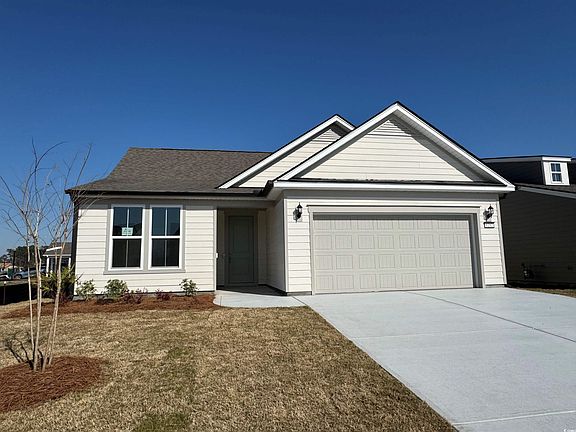 Mystique Floorplan - Under Construction, Estimated Move-in Ready Date February 2025. Mystique backs to Green Space/Easement. < 30 Second Walk to Clubhouse/Pools/Gym/Pickleball. Desirable Floorplan with 2-Car Garage + Tandem Golf Cart Storage Space/Work Space in Garage. Open Floorplan with Gourmet Kitchen and Whirlpool Stainless Appliances & Gas Cooktop, White and Gray Kitchen Cabinets with Victorian Silver Quartz Countertops, Upgraded Decorative Backsplash. Large Kitchen Island and Walk-in Pantry. Matte Black Kitchen Hardware, Gooseneck Faucet & Pendant Lights over Island. Brushed Nickel Door Levers, Bath Faucets and Bath Hardware. Upgraded Trim Package with Drop Zone at Owner's Entry. Upgraded 12 x 24 White Carrara Tile in Owners Bath with a fully-tiled, walk-in, Zero-entry Shower for a Luxurious Spa Bath. ADA Accessible Shower. Tray Ceiling in Gathering Room and Owners Suite plus Spacious Owners Walk-in Closet. LVP Flooring through out, No Carpet! 10' x 13' Screened Porch with Patio and Gas Line Stub-out for BBQ. Attic Storage above garage accessible via pull down ladder. Energy Efficient LED Lighting through-out, Attic Insulation upgrade, Gas Tankless Hot Water Heater. Irrigation System, Bronze Gutters, Taexx Pest Control System and 1 Year Termite Bond included. 10-Year Builder Structural Warranty with 5 Year Leak protection for your Roof & Windows. ALL NEW 55+ Active Adult Community – Age Restricted, Central North Myrtle Beach, only 1.5 miles from the ocean. Golf Cart friendly, pets/fences allowed, on-site Amenity Center/Clubhouse, Yard Care, High-Speed Internet and Cable included in Monthly HOA. <500 Homes upon completion, build to suit, choice of 10 Customizable Floor Plans. 2-4 Bedroom homes with 2-3 car garage options. Monthly Events/Activity Calendar provided by full-time Lifestyle Director, and Amenity Center/Clubhouse scheduled to be completed late Spring 2023 and will include Indoor Lap Pool, Outdoor Salt Water Pool/Hot Tub, 8 Pickleball Courts, Fitness Center, Bocce Courts, Putting Green & 5’ Sidewalks both sides of the street throughout the community! <5 minutes to City Community Center, Sports Complex, Aquatics & Fitness Center and Crescent Beach Public Beach Access. Dog Park, Marinas, RV Parks/Storage, Golf Courses, Dining, Grocery, Medical Facilities and more within 15 minutes. Myrtle Beach International Airport <30 minutes away! You cannot beat this location!