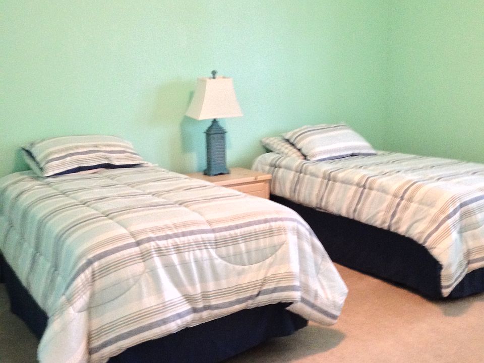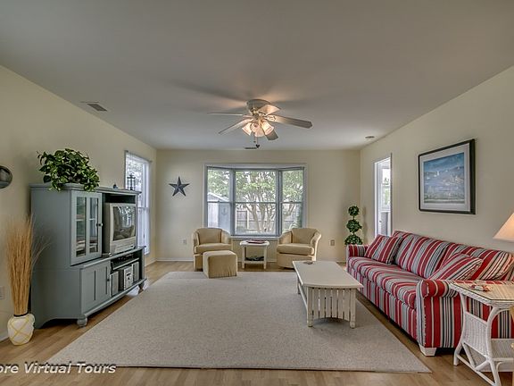 Bright and airy, this Village Greene twin home provides an open floor plan with the living room and kitchen at the rear of the house. Overlooking a back yard that is fenced and private with 2 storage sheds, fire pit and paved walkways. You can enjoy watching family and pets from the large bay window. Off to the side is a separate laundry room which provides additional access to the yard. The master bedroom has 2 large closets and a private bath with shower. The hall bath has tub and shower and is conveniently located to the other 2 bedrooms in the front of the house. Front porch with yet another closet for the beach chairs and umbrellas. Outside shower. Partial furnishings included. New roof in 2010.