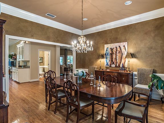 Colonial style two story home located in Potter's Mill subdivision in the heart of Old Town Daphne. Convenient to schools, parks and Mobile Bay with public access. This is a spacious family home with 4 bedrooms and 3.5 bathrooms. Other rooms include a large office space, large open dining room, breakfast area, powder room, living room, master bedroom and bath downstairs. Additional large den and game room upstairs along with 3 spacious bedrooms, two full baths, and central vacuum system. Large kitchen features SS double wall ovens, warming drawer, dishwasher (all in excellent condition and purchased within last 5 years) and gas cooktop. Exterior features include a large deck, privately fenced back yard, heated gunite pool with waterfall and fountains, stacked stone planters and scored concrete decking. New bathroom fixtures, paint throughout, canvas awnings just replaced, new outdoor light fixtures, fresh paint on deck. The neighborhood is convenient to many shops and restaurants. Bedroom 3 is large enough to be considered a second master suite. Rec room can easily accommodate a sitting room and extra den area. Lots of open square footage between dining room and kitchen. Separate living room could be an office/music room, etc. Lots of open living and entertainment spaces! Room dimensions are estimates and should be verified by showing agent. *See attached documents for aerial map as well as average utility costs and annual insurance cost.