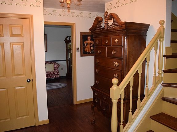 Impressive 4 bedroom 2.5 bath 2-story in the lovely Parkview Heights Subdivision has been superbly maintained & updated over the years. Gorgeous hardwood floors wainscoting & stylish interior create a welcoming feel thru-out the house. The recently renovated country-style eat-in kitchen delivers beautiful custom cherry cabinets built-ins cast iron sink & Quartz counter tops. The spacious dining room provides the perfect setting for entertaining guests. The family room addition delivers a cozy wood burning fireplace built-in bookshelves & French doors which lead to the covered rear deck overlooking the secluded back yard. Upstairs you will find a master suite w/walk-in closet & full bath. There are 3 additional bedrooms (all w/hardwood floors) & a remodeled full bathroom. Additional highlights include a remodeled 1/2 bath on the main floor an attached 2 car garage metal roof (2005) basement plumbed for half bath lovely landscaping & eye-catching curb appeal.