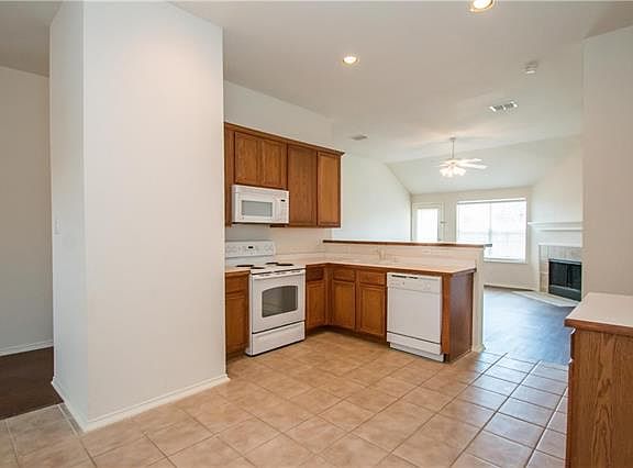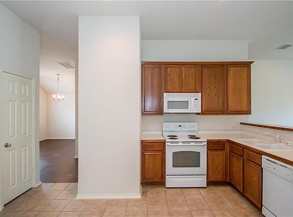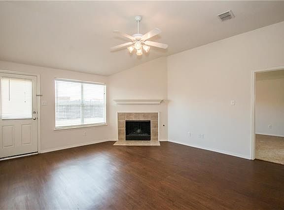 This great 3 bedroom 2 bath home in Sendera Ranch offers nice living area with gas fireplace. Spacious kitchen with plenty of counter and cabinet space. Two inch faux wood blinds, fresh neutral paint and newly added upgraded flooring. Master suite has double sinks, walk in closet & separate tub and shower. Full sprinkler system and open patio complete the package. Shows like a model home- see it today.