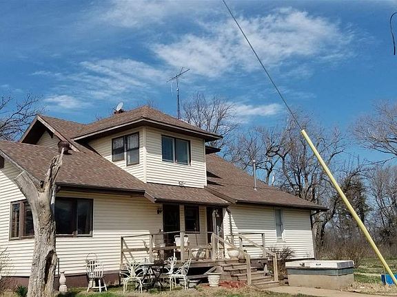 Secluded 9.4 Acres Country Living! 5 Bedrooms, 2.5 Baths, 2 Story farm house with multiple outbuildings. Character throughout home with wide wood trim, and Hutch, bookcases, and window seat built in. Main floor Laundry, Zoned Heating & Air