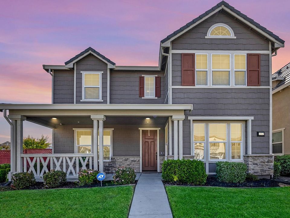 Exceptional 5 bed, 4 bath home with uncompromising upgrades. Rich hickory wood flooring, upgraded carpet, porcelain tile and smooth wall texture. In-ceiling speakers throughout including garage, patio, and 7.1 surround in great room. Chefs kitchen with GE Monogram appliances: indoor grill, dual microwave and convection ovens, whisper quiet dishwasher, and range hood with food warmer. White quartz kitchen countertops with huge island ideal for doing homework or entertaining guests. Expansive pantry space and abundant counters perfect for laying out a buffet-style meal. Separate dining room. Luxurious master spa bath, dual shower heads with rain shower, and large soaking tub. Master bedroom has 2 large walk-in closets and sitting area. Owned ADT security system. Audio/video pre-wiring for TV in great room, master bed, loft and outdoor patio. Garden paradise with fully landscaped backyard, flagstone walkway, and multitude of fruit trees and plants. Walk to elementary and high school.