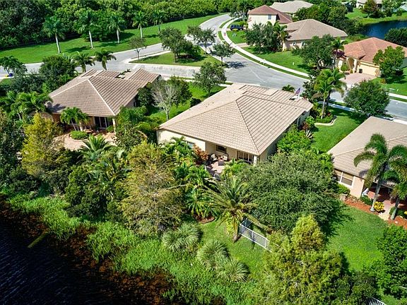 LEGACY COVE - 4BR/3BA, 3 car garage Entry double doors to beautiful *Florida’s superb life with a view.. expansive blue sunny skies. We always have rooms with a view...add a stunning lilies dancing on the moonlight on the beautiful scenic lake that just happens to be sitting on the back yard and this house is an amazing home.. Features include: 12 foot volume ceilings, wood flooring, double door entry, New crown molding/baseboards, newly painted in & out. All new lighting fixtures + mirrors throughout primary suite ~ additional 3 split bedrooms plan/ and additional 2 bathrooms, security system, New extended top grade quartzite counter tops, stainless large single sink and faucet along w/ new stainless Bosch kitchen appliances, stainless KitchenAid drop in stove/range w/ subway backsplash. New late 2020 16 seer 5 ton HVAC . Newer hot water heater, & microwave, additional large pantry with barn doors, Additional large laundry room, garage was built with a 4 full foot extension across the entire width of the front of garage. Larger Air-conditioned 3 1/2 car heavily supported garage doors. Huge work area from home and from this Large covered patio with extended pavers, from this gorgeous tropical landscaped backyard with a splendid view all times of day and terraced backyard firepit area. Room for pool and spa if you so desire... Community amenities include: gated with 2 entrances, clubhouse with kitchen, community room, fitness room, community pool, basketball court, two tennis courts, pickleball and play area for children with pool. All sizes, taxes, descriptions and HOA are approximate.