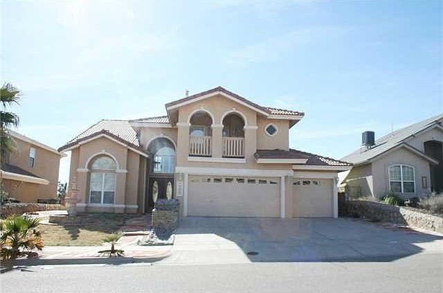 Beautiful house in desirable Sun Ridge, by Montwood. 3 bedrooms, 2 .75 baths, 2 balcony's, 2 fireplaces. Huge Master bedroom. 1 bedroom downstairs w/bath. Upstairs spacious loft w/3 additional bedrooms. Ceramic til, pargo & carpeted floors, refrigerated air, 2750 sq.ft. living area, shutters thru-out, Big patio w/flag stone floors w/BBQ & built in fireplace. Cascades in front & backyard. 3 car garaqe & Home Warranty! Wait no more before its gone