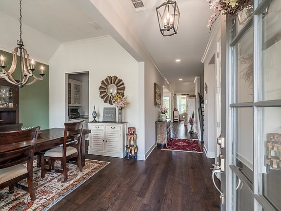 Welcome to this charming 4-bedroom,(2 down) 3-bath home located in Villages at White Oak. Boasting a delightful covered back patio, you'll find a stone firepit nestled in the fenced yard, creating a perfect space for outdoor relaxation. Inside, the kitchen features granite countertops, gas cooking, and double ovens, ideal for culinary enthusiasts. Fridge stays. 2 bedrooms up with a full bath and a playroom/bonus room. The neighborhood offers a common area, fostering a sense of community.