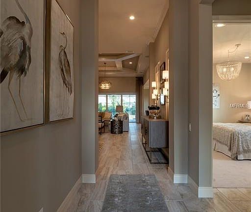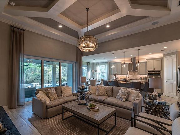 - Interior Features: Ceiling Fans(s), High Ceiling(s), Split Bedroom, Vaulted Ceiling(s), Crown Molding, Walk-In Closet(s), Window Treatments, Open Floorplan, Solid Surface Counters, Solid Wood Cabinets, Tray Ceiling(s), In Wall Pest System, Coffered Ceiling(s), Thermostat