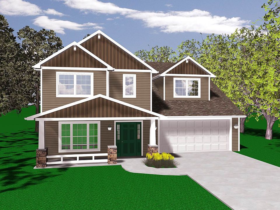 ILLUSTRATION SHOWN FROM FOUNDATION STAGE UNTIL SIDING IN ON. Lancia's Noah Shane II is a beautiful floorplan with a lot of room. This home located on a cul-de-sac has a backyard view of the Pond and extra common area. This gem has a 4-Car Garage, 4 Bedrooms up, 2.5 Baths, Den-Bonus Room and an open plan living area in the back of the home. Gracious Foyer has stained Craftsman handrail, post and iron balusters. Home has 2,644 sq.ft. Bonus Room or Den features glass pane French Doors. Great Room is spacious and bright with open access to the Kitchen and Nook. Great Room has can lighting, paddle fan and a stone faced gas vented fireplace with raised hearth and outlet above for tv. Kitchen is easy care with curved breakfast bar at island, matte slate stainless appliances including smooth-top stove, dovetail drawers-soft close doors, granite countertops with ceramic backsplash and addl gas hook-up. Nook sliding doors open to a 14x14 Patio. Separate Laundry Room with 3 cubbie lockers. Base cabinet in hallway leading to Garage is a great alcove-drop space. Large Owner Suite Bedroom features paddle fan, Owner Suite Bath has dual sink vanity, 5' shower with ceramic bench with fiber pan, Owner Suite Bath floor is also ceramic tile. Walk-in closet has dual rod & shelf 1-wall unit. Bedroom 4 also has a walk-in closet and Main Bath has dual sinks. Pride vinyl plank flooring on first floor except in Bonus Room-Den. Elevation has the latest details with Craftsman stone columns, board and batten in the gables, split rail on front porch, sidelites and dentil ledge on the front door. 4-Car Garage has keypad entry, 3 bays across and 4th bay deep. Garage is finished and features attic access with pull-down stairs and 2 sheets of OSB board. This great home has Simplx Smart Home Technology - Control panel, up to 4 door sensors, motion, LED bulbs throughout, USB port built-in charger in places. SWAC schools. 2-year foundation to roof guarantee and a Lancia in-house Service Dept. (Grading and seeding completed after closing per Lancia's lawn schedule.)
