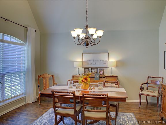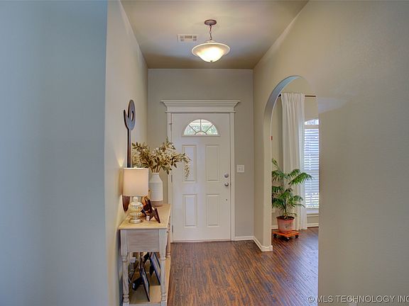 BEAUTIFULLY maintained home with lots of updates in Bixby schools. You do not want to miss seeing this kitchen!! Custom cabinets, new granite, subway tile backsplash, stainless steel appliances etc... Stunning hand scraped hardwood floors throughout most of the downstairs and updated carpet in all bedrooms. This home features all 4 bedrooms down. The primary bedroom is separate from the other 3 bedrooms Just off the entry is the formal dining. The large great room has a vaulted ceiling with gas fireplace and is open to the kitchen and breakfast nook. The bathrooms have been updated with granite countertops and tile flooring. Adjacent to the kitchen is a beautiful hardwood staircase leading to a spacious game room. Off the game room is an oversized floored attic for tons of storage. This home sits in a cul-de-sac. with gorgeous curb appeal. The 3-car garage has a single garage door that opens to the backyard as well for riding mower etc. The back yard is expansive w/ room for pool.