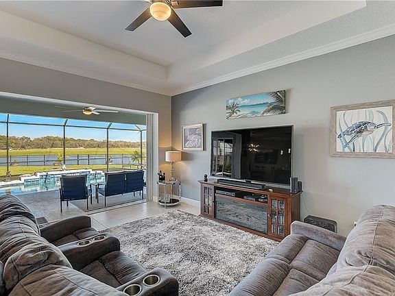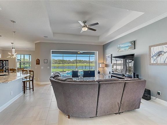 Premium Lakefront Lot, Pool Home in Cross Creek! Welcome home to this spacious, 3 bedroom, 3 bathroom lakefront, pool home located in the sought after community of Cross Creek. This move in ready home is almost brand new (built in 2019) & is filled with premium upgrades. The stunning exterior boats an oversized .248 acre lot w/ a fully fenced backyard, a 3 car garage, luscious mature landscaping, upgraded exterior lights and a screened back patio w/ covered seating and heated saltwater pool! The interior features include; soaring ceilings, large living spaces, a huge luxurious master suite, 2 additional bedrooms, upgraded light fixtures, crown molding, tall baseboards, extended hallways, quartz countertops, upgraded ceiling fans & much more. This home also features continuous wood-look tile throughout the entire home. Attached is the private 3 car garage that features extra storage & beautifully painted epoxy style floors. The spacious family room offers a beautiful trey ceiling, in-ceiling speakers, crown molding, lighted ceiling fan & sliding, stacking glass doors. Prepare a feast in the gourmet kitchen complete w/ recessed lighting, drop down lighting, upgraded extended wood cabinets, tile backsplash, matching stainless appliances, quartz counters & large breakfast bar w/ sink. The comfy formal dining room boasts upgraded chandelier lighting, sliding glass door & crown molding. The private master suite is made complete w/ french door entry, a lighted ceiling fan, glass panel door to pool & transom windows. The luxurious master bath boasts upgraded lighting, walk in glass shower, upgraded faucets & dual sink L-style vanity w/ wrapping mirror. This home also features 2 guest rooms & a full guest bathroom. Enjoy the tranquil lake view from the covered & screened patio complete w/ a lighted ceiling fan and a beautiful, heated saltwater pool. The premier community of Cross Creek is furnished with a beautiful pavilion with resort style swimming pool, basketball court & playground. This amazing home is just minutes from the Fort Hamer Bridge, Lakewood Ranch and University Town Center Mall (UTC)! It is also close to great schools, dining, shopping and I-75 yet perfectly tucked away from the hustle & bustle. Call today to schedule your private showing, this home will not last long.