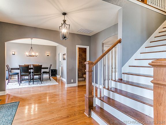 Gorgeous home in coveted JENKS PUBLIC SCHOOLS! Nestled in the back of the neighborhood on a circle drive in the highly sought-after Country Lake Estates, this spacious 4 bedroom, 2 full and 2 half bath, 3 car + 3 living/work rooms residence offers impeccable curb appeal, serene surroundings, spacious living, beautiful wood floors, open kitchen with center island, quiet back yard, and so much more! New upgrades include new Trane A/C units (2022), kitchen remodel, and master bath remodel. Close proximity to the creek turnpike, the new Jenks outlets, fitness clubs, and restaurants located in the booming downtown of Jenks - all within 5 minutes of your front door! Schedule an appointment today to see this lovely home!