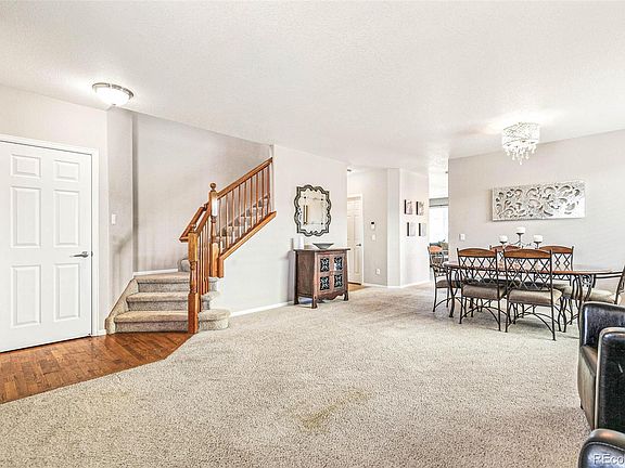 Welcome Home to your spacious Two-Story Home in Stroh Ranch! Attractive & well-maintained 4BR/3BA home nestled on a quiet cul-de-sac. *Big ticket items are New: Brand New Impact Resistant Roof (2023)*New Roof Covered Back Patio (2020)*New A/C (2023)*New Hot Water Heater (2022)*New Bosch Dishwasher (2022)* New Furnace & Humidifier (2020)*Exterior Painted (2020)*New Landscaping & Trees (2020)* Inviting front porch is perfect for unwinding and visiting with neighbors. As you step into the home, the main floor has an open layout & flows nicely from the formal living room into the dining room, perfect for entertaining guests! The spacious eat-in kitchen features recently refinished hardwood floors, Whirlpool stainless steel appliances & New Bosch dishwasher, solid wood cabinets, a pantry, tile countertops, quaint kitchen island, sliding glass doors to beautiful backyard. The kitchen flows seamlessly into the everyday living room with a gas fireplace & built-ins, huge Costco-style pantry or storage closet & large window with nice views of the manicured backyard. Upstairs, be delighted with 4 Bedrooms & 2 Full Bathrooms on Upper Floor & a convenient & spacious laundry room w/ folding table. The best part, the Maytag washer & dryer are included and you no longer need to climb stairs to put your laundry away! Retreat to your Primary Suite w/ Big En-suite 5-piece Bath & 2 Walk-In Closets! Large unfinished basement has 8 foot ceilings & is ready for you to make it your own! All it needs is your finishing touches! Spacious tandem 3 car garage, is perfect for 2 cars & storage. A 5 minute drive to Creekside Community Park & Rec Center (indoor pool, outdoor pool, recreation center, tennis courts, parks) & minutes to Cherry Creek Trail System & Stroh Ranch Soccer Fields. Stroh Ranch is one of the premiere sub-divisions in Parker Colorado and for good reason. Stroh Ranch has one of the lowest HOA fees per month and the best neighborhood recreational facility in all of Parker.