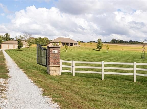 Quality built all-brick ranch home outside the city on 20 +/- beautiful acres! Property features on the main-floor include: Spacious primary bedroom with fireplace, private bath, and walk-in closet. Open concept great room with fireplace. Large kitchen/dining combo area. Two additional main floor bedrooms and laundry. Lower level offers: Side walk-out, additional family area, two bedrooms (non-conforming), two brick fireplaces, storage area, and plumbing ready for a second kitchen. New side-deck/walkway. Nice covered back patio. Attic storage over garage. Outside amenities include an amazing new 50x60 horse barn with 3 possible 4 horse stalls, tack room, large storage space for hay, implements, etc., automatic watering, and a 54x74 outbuilding with 4-14' overhead doors, large area with overhead heat, 12'x16' office/storage space with heat and cooling unit, and 3/4 bath. This gorgeous acreage has the perfect mix of trees, pastures, and creek creating an amazing country setting. Adjoining 20 acres +/- will be for sale once survey in complete. All measurements and acreage are approximate.