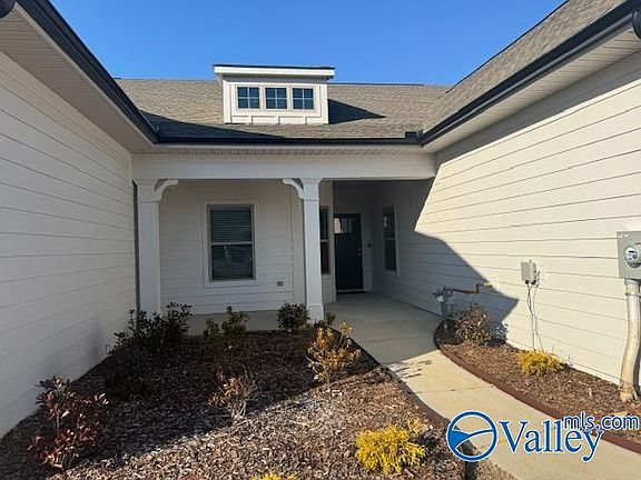 One story maintenance-free living at its finest in Town Mill. Newly built with prime location, upgrade and full builder's 1-2-10 warranty. A seamless open layout featuring a well-equipped kitchen, dining room and spacious Great Room with porch access, perfect for family living and entertaining. Primary suite has trey ceiling, frameless shower, separate garden tub with tile surround and a huge walk-in closet. Crown molding in kitchen, living room and master bedroom. Huge two car garage, water view, beautiful kitchen island with quartz top, blinds, fans in all three bedrooms. Refrigerator, washer and dryer to convey. Minutes to I-65 and SR-72, Mazda Toyota Mfr., and Amazon.