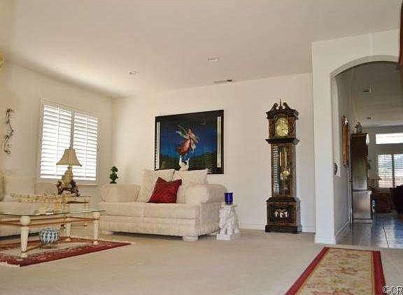 Standard Sale! Beautiful single story home sitting on a large 9,583 sq ft lot on a quiet cul-de-sac in the gated community of Victoria Grove. Double door entry opens to this spacious open floor plan with lots of dual pane windows to let the natural light in. Plantation shutters through out this home as well as a very large kitchen with a center island, tons of cabinets plus a walk-in pantry. The kitchen opens to the oversized family room w/fire place and extra high ceilings. The archways as you enter the kitchen and bedroom areas are beautiful and add a unique touch.Fully landscaped front and backyards with mower curbs and a concrete patio wrapping around the back and sides of the home. Covered front porch is perfect for enjoying anytime of the day.Victoria Grove is a gated community that includes two parks, open sports field, baseball field, basketball court, and a community swimming pool/spa. Lake Mathews Elementary School is located within the community and is a California Distinguished School.
