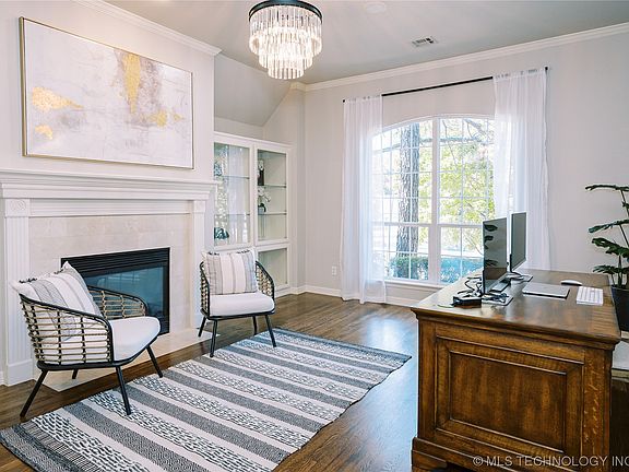 NEW PRICE! Peaceful & Serene, Family Home w/ One of a Kind, Wooded Back Yard Sanctuary. This Gorgeous Property Sits in a Quiet Cul-de-Sac w/ 4 Bedrooms + 3 Full Baths on the Main Level. Stunning Views are Enjoyed from the Open Living Room, Kitchen, Formal Dining and 2 Bedrooms. Private Office w/ Fireplace and Built-In Cabinetry. Spacious Game Room/Man Cave with Private Bath + Large Storage Closet Upstairs. Walk Out, Floored Attic w/ Ample Storage Capabilities. Iron Fencing Encapsulates the Dreamy, Tiered Back Yard & Water Feature. Enjoy the Hot Tub or watch TV on the Covered Patio. Washer, Dryer, Refrigerator, Outdoor TV AND Garage Workout Flooring Included with the Home. Pristine Wood Flooring, Some New Paint, & New Carpet. Newer HVAC System. Neighborhood Trails and Stocked Ponds! Bixby Schools.