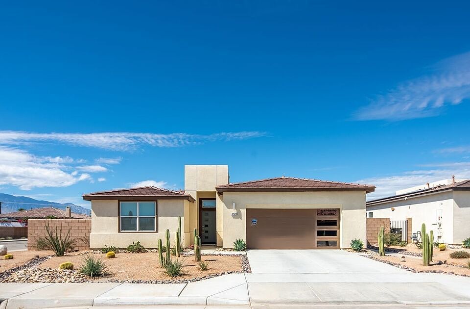 Corner Lot Home with Stunning Mountain Views! Every detail of this home was carefully and meticulously designed by the world-renowned architecture firm BassenianLagoni, featuring custom-level finishes at a production-builder price. Step inside to an open-concept floor plan with soaring 11+ foot ceilings and a bright, naturally lit great room. The primary suite offers a luxurious ensuite bathroom with a hand-crafted tiled shower, dual vanities, private water closet, and an expansive walk-in closet. The backyard is truly impressive walled-in and nearly 10,000 sq ft, with fresh rock landscaping, a brand-new Alumawood patio perfect for outdoor entertaining, and convenient gate access from the side street. Best of all, enjoy breathtaking panoramic views of the San Jacinto Mountains right from your yard. Key Features: Paid solar system & energy-efficient through out this home design, GE stainless steel appliances Maple wood cabinetry Porcelain tile flooring throughout Approx. 10,000 sq ft lot NO HOA & NO MELLO ROOS This home combines thoughtful design, luxury finishes, and an unbeatable location. So what are you waiting for!