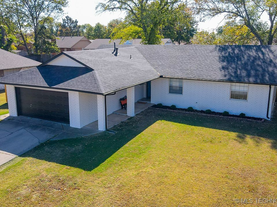 except for the kitchen and laundry room, which feature elegant tile. With 3 spacious bedrooms, a large living room complete with a wet bar, and 2 fully remodeled bathrooms, this home is perfect for family living and entertaining. Major updates include a brand-new roof and gutters installed in 2023, a new AC unit also added in 2024, and a 2-yearold hot water heater. The exterior is equally impressive, with fresh paint, updated landscaping, and a new privacy fence that enhances the home's fantastic curb appeal. Step out back and you'll find a large yard with a spacious, covered porch, ideal for cookouts, gatherings, or simply relaxing. Plus, you're just 2 minutes away from the elementary school, making this home as convenient as it is beautiful.