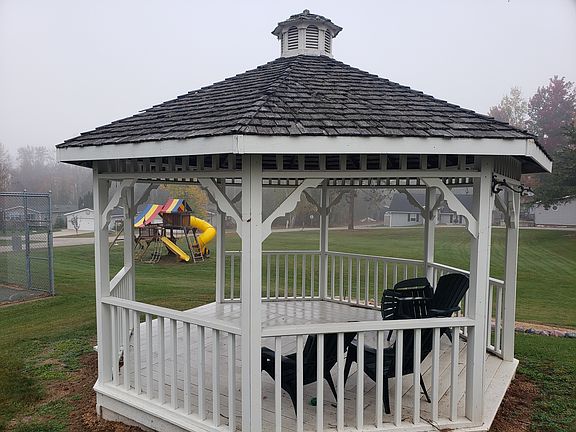 This lease to own home has a large covered parking area, a back yard with endless possibilities. We are located in Evergreen Park with indoor swimming, club house with game room, fitness center, public Wifi, tennis and pickle ball court. Property is near Chute Pond , a 450 acre recreational lake. Snowmobile trails and atv trail accesss from the property. Water, sewer and garbage disposal are included in rent. Up to two small pets allowed. Laundry hook ups are in the unit or you may use the coin operated machines in the Rec. Center. All applicants will be screened with credit and criminal background checks, $50 nonrefundable fee per person .
