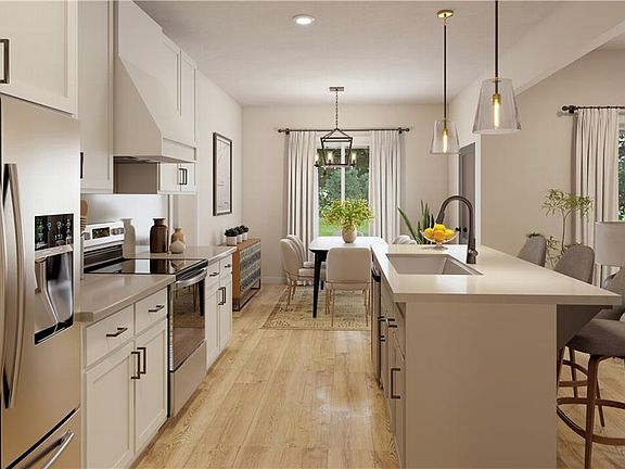 SOLD BEFORE PROCESSING - CUSTOM BUILD - Hesston II Reverse: A Haven of Elegance and Comfort - Step into the extraordinary home, where wood floors beckon you from the moment you pass through the double-door front entry. They guide you into the heart of the home: a magnificent Great Room crowned with a cathedral vault ceiling. Here, a cozy gas fireplace, flanked by lower cabinets, invites relaxation. Imagine the possibilities with the option to upgrade to beautiful floating shelves above, perfect for displaying cherished treasures or your favorite reads. The spacious kitchen is a culinary dream, featuring a walk-in pantry and gleaming stainless steel appliances (refrigerator not included). Adjacent, the elegant dining room opens directly onto a covered deck, your private portal to a serene, treed backyard—a perfect setting for morning coffee or evening gatherings. Descend to the lower level, where comfort and entertainment await. Two additional generously sized bedrooms offer private retreats, while a versatile rec room provides ample space for hobbies or media enjoyment. The lower level rec room ensures you are always ready to entertain, and the walkout lower level leads to a truly private lot, an idyllic backdrop for memorable gatherings with friends and family. This isn't just a home; it's a lifestyle waiting to be lived. Cedar Niles Trails/Park is accessible from the Community and Lake Olathe is nearby.
