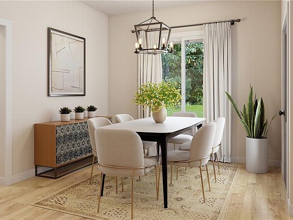 Cozy gas fireplaceIdyllic backdropElegant dining roomPrivate lotWood floorsCovered deckSpacious kitchen
