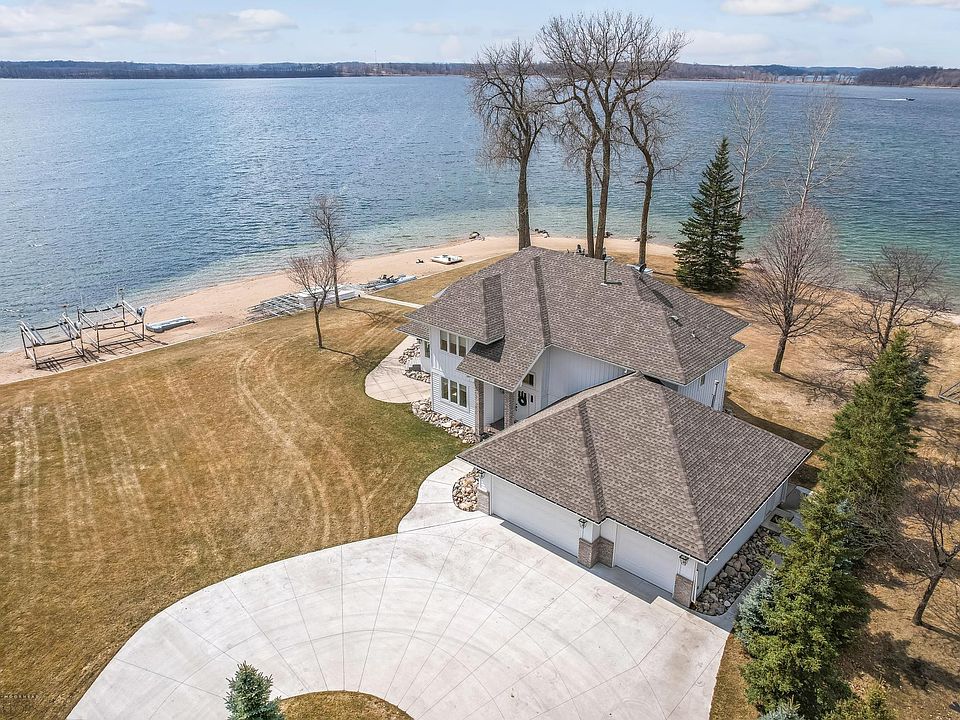 Nestled on the coveted shores of Big Cormorant Lake, this exquisite 4-bed, 3-bath, 2-story home boasts an impressive 315 feet of prime, sandy lake shore. Experience panoramic views and breathtaking sunsets from every angle of this very private property. The open floor plan and 2-story great room with a fireplace offer a welcoming ambiance for relaxation and enjoyment. High-end finishes adorn every detail, while the expansive master suite provides a luxurious retreat. The exquisite kitchen featuring Wolf and Sub-Zero appliances is a chefs dream. The flat lot with no elevation ensures easy access to the lake. Enjoy summer fun on the lake and winter activities in the snow, making every season unforgettable. Don't miss this unparalleled opportunity for lakeside luxury living with no elevation and plenty of sand! See this one before its gone!