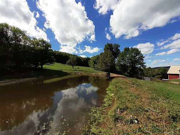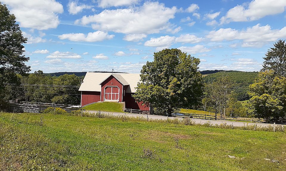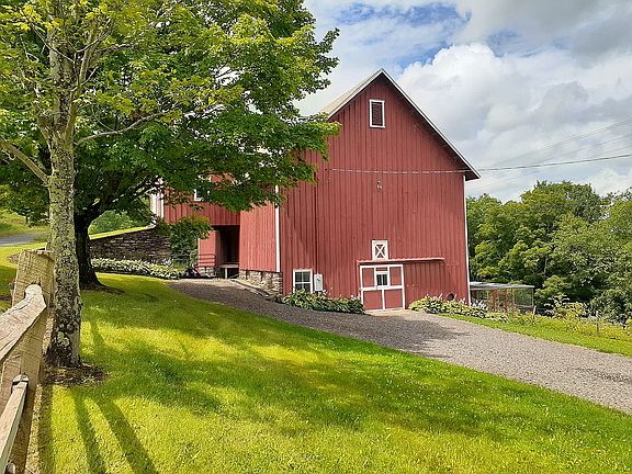Why settle for a piece of the rock'' when you can own an 80-acre slice of history''? Turnpike Road, a.k.a. The Catskill Turnpike, helped open this Great Western Catskill region to travelers, explorers, and farmers. In the late-1800's, this was the central artery for the growing dairy industry that supplied milk products directly to New York City. *** THE BARN *** While many things along this gorgeous road have changed, the rolling valleys, peaks, and period architecture still provide spectacular vistas and restorative escapes. The barns along this route are simply breathtaking cathedrals of commercial cattle farms from a by-gone era, and yet 12525 Turnpike Road offers a rare opportunity to possess a truly fine example of one of these barns that has been completely restored, protected and preserved -- from the new composite roof, through all three floors, and down to the completely reinforced foundation - this brilliant architecture is yours to use or just appreciate for years to come (it even has heat and a full bathroom). *** THE FARMHOUSE *** The accompanying farmhouse is now a fully livable retreat with 3 bedrooms plus a bonus room, 1 full bath, plus a convenient half bath on the ground floor. The great open kitchen/living space is completed by a magical sunroom that overlooks 2 of the property's 3 ponds and the Kortright Creek Valley below. Like the barn, the home has received the benefit of caring owners - completely restored from the foundation to the roof -- all-new electrical service, plumbing, and energy-efficient windows are accented with reclaimed features that include reclaimed barn-wood flooring and original doors. The kitchen has been completely re-imagined with new cabinets, stainless steel appliances, gas stove and hidden dishwasher. A door connects to the 2-car garage on one side, while the open end flows into the living room, anchored by a vintage mid-century modern porcelain enamel Malm fireplace, and that great sunroom. There is a full bath and 2 bedrooms on this floor, each with sliders to the massive deck. You may have trouble selecting a favorite spot on this property, but this deck will certainly be on the top of everyone's list - think morning coffee, grilling grass-fed burgers, and sunset and star-lit cocktails. Upstairs, there is a fantastic 2-room suite with large sitting area and separate bedroom (use both rooms as a 3rd and 4th bedrooms when you need the space). The ground floor has received loving care, as well, with a completely finished space great for TV, billiards, and other recreation! Plus laundry and a door to the lower patio. 80 acres with views-to-die-for, 3 ponds, trails for horseback riding snowmobiling and all-day hiking, 3-floor restored dairy barn and minutes from area attractions of Cooperstown, Oneonta, Delhi, Stamford and all the riches of the Western Catskills.