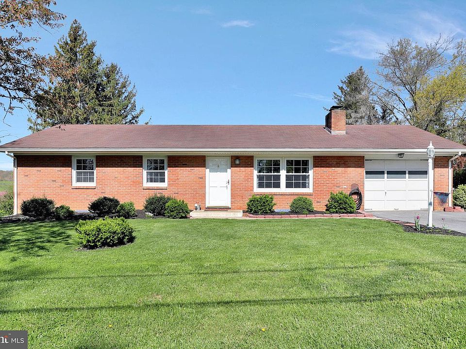 Brick rancher w/ 3 bedrooms & 1.5 baths. Lots of great features like the almost 1/2 acre landscaped yard, paved driveway and attached garage. Gorgeous stone fireplace in the living room, ceiling fans in the LR & bedrooms and fresh paint throughout. Many upgrades including LVP flooring throughout the main level. Remodeled main bath has a double bowl vanity w/marble top and ceramic tile flooring. All appliances convey including new stove & refrigerator. Roof and windows were replaced within the last 7-8 years. Partially finished basement with wood stove, water treatment system and inside & outside access. Offered at $225,000.