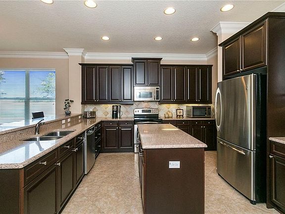 WOW! This home is ABSOLUTELY GORGEOUS! Classically elegant and meticulously maintained - this home is your dream home! Double crown molding throughout the downstairs. Beautiful wainscoting in the formal living room and dining room. Attractive neutral color scheme. Open floorplan flows beautifully from the formal living areas to the kitchen, breakfast nook, and family room! Spacious kitchen has quartz countertops, stainless steel appliances, island, butler's pantry and breakfast bar backing to the family room. Massive screened patio has been added to the lanai. Enjoy the tranquil pond views from your outdoor living area. Master suite is a body and soul retreat! Master bath boasts dual sinks, large jetted tub, separate step-in shower and twin walk-in closets. Master bedroom features beautiful engineered bamboo floors. Two secondary bedrooms are complete with walk-in closets. Upstairs bonus room can function as a theater room, in-law suite or game room and features a full bathroom and closet. Oversized 3 car garage with room for storage and a work bench! Oversized corner lot! Freshly painted exterior and mature landscaping. Split bedroom plan with under stair storage. Lakes of Windermere is a sought after neighborhood boasting lots of trees and green space, playgrounds, tennis courts, sport courts, fishing pier, parks, and a neighborhood pool. Convenient location with easy access to shopping, dining and area attractions.